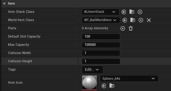 World Item ClasstoBP_BallWorldItemfrom the section above. This lets us drop this item into the world as an actor. - Change the